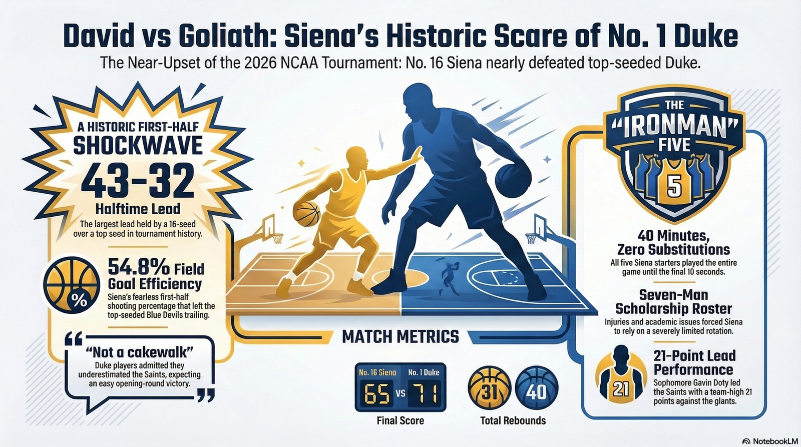 The halftime scoreboard read like a computer glitch: Siena 43, Duke 32. This wasn’t just a plucky underdog lead; it was historical. That 11-point cushion represented the largest halftime lead a No. 16 seed has ever held over a No. 1 seed in the history of the NCAA Tournament.